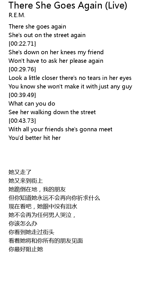 | [00:31.26] | Look a little closer there's no tears in her eyes |