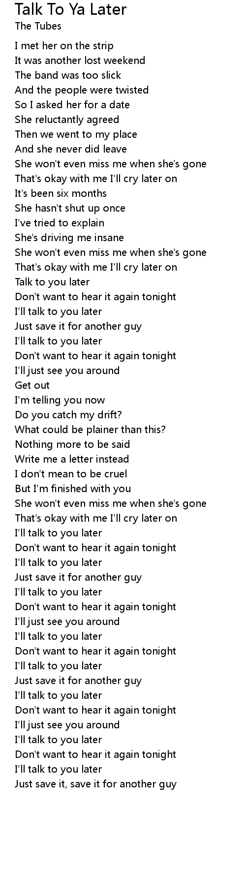 Talk To Ya Later Lyrics