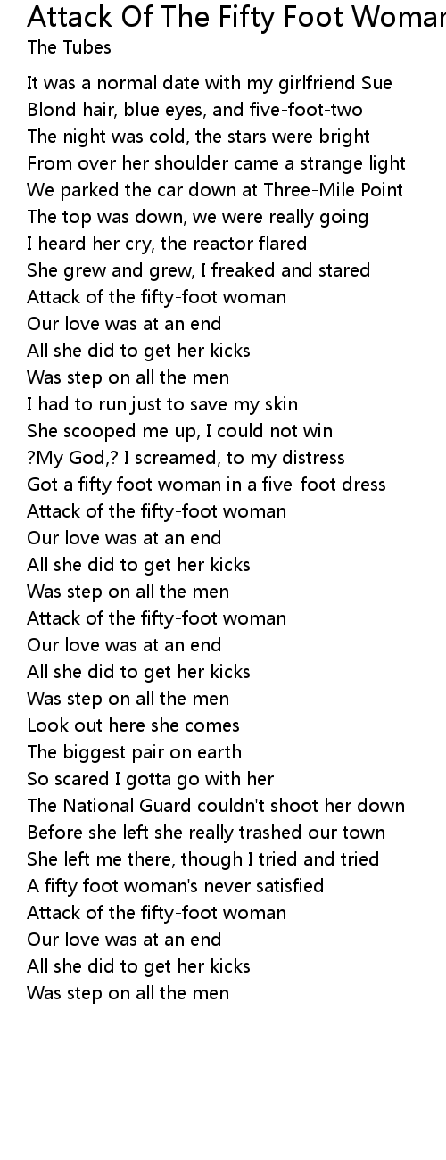 | A fifty foot woman's never satisfied | |