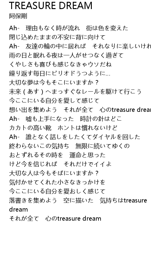 | [02:05.351] | 想い出を集めよう それが全て 心のtreasure dream |