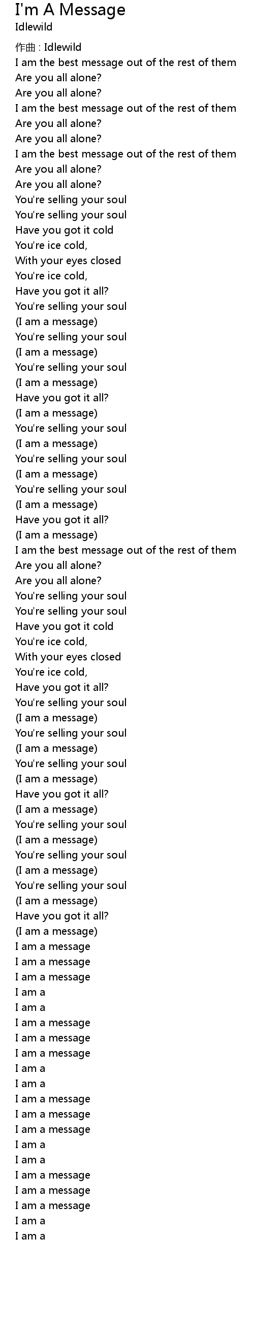 | Song | I'm A Message |