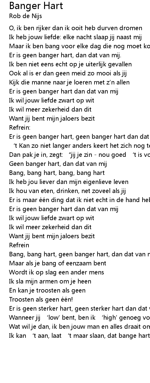 | Er is geen banger hart, geen banger hart dan dat van mij | |