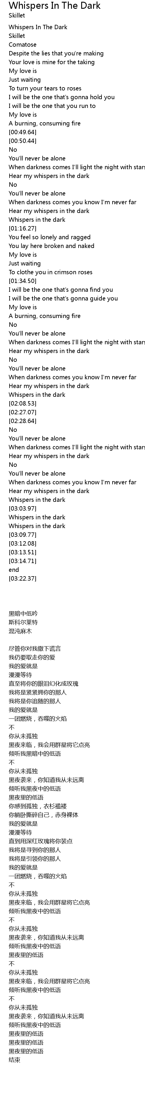 | [02:57.31] | Whispers in the dark |