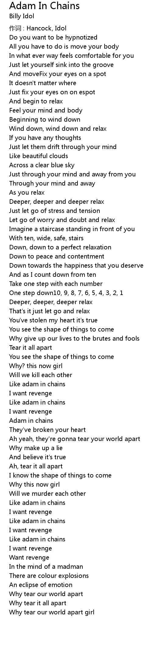 | Song | Adam In Chains |