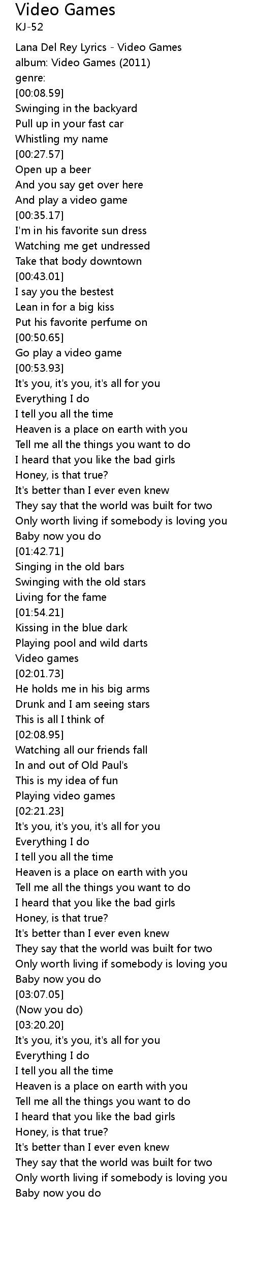 Lana Del Rey Lyrics - Video Games |