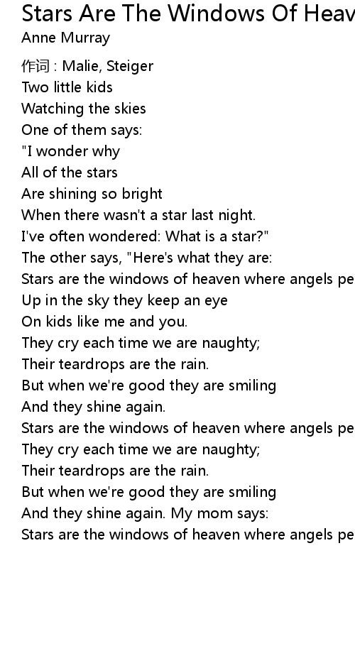 | Song | Stars Are The Windows Of Heaven |