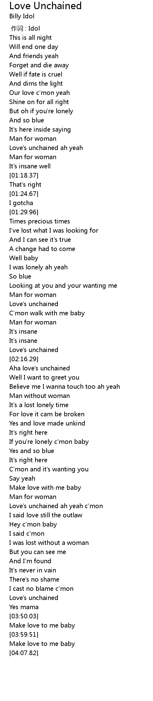 | [03:19.19] | Love's unchained ah yeah c'mon |