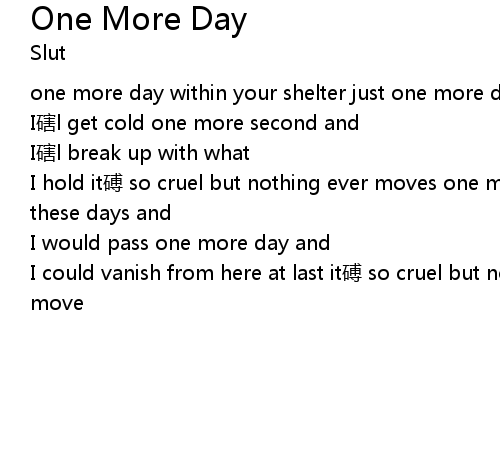 | I hold it磗 so cruel but nothing ever moves one more day and it was over one of these days and | |