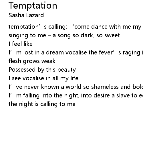 | temptation' s calling: " come dance with me my crimson queen" the siren' s singing to me a song so dark, so sweet | |