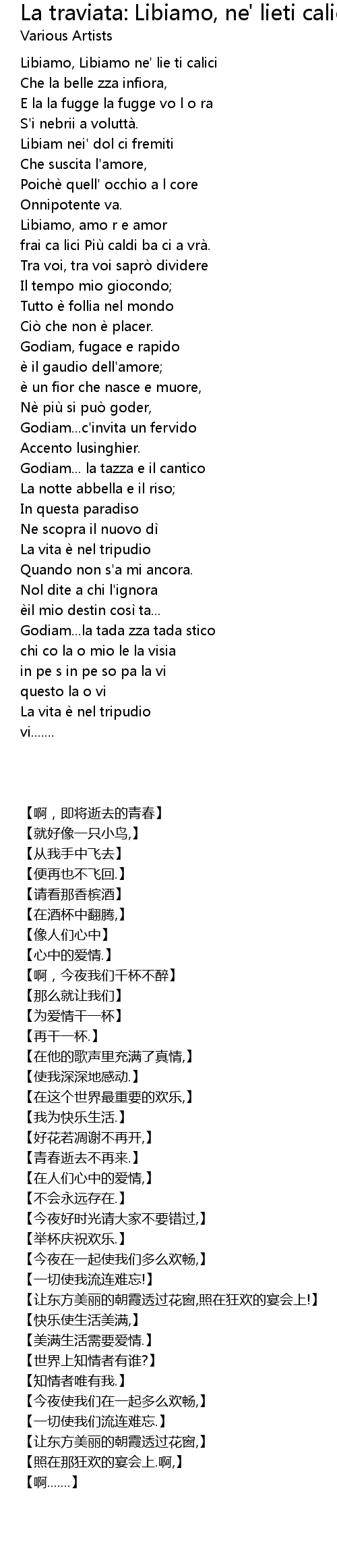 | [00:20.74] | Libiamo, Libiamo ne' lie ti calici |