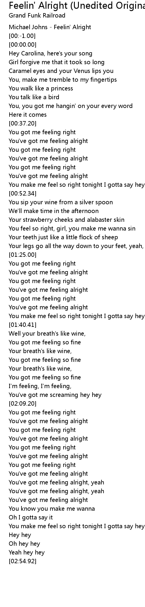 Feelin' Alright (Unedited Original Version) (24-Bit Digitally Remastered 02) Lyrics