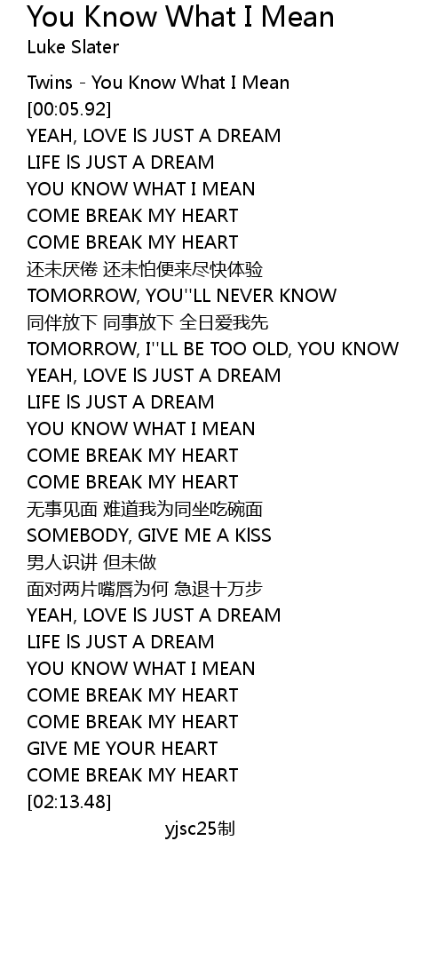 | [00:22.66] | YOU KNOW WHAT I MEAN |