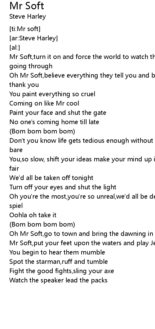 [00:18.00] Oh Mr Soft,believe everything they tell you and be damned if they'll thank you