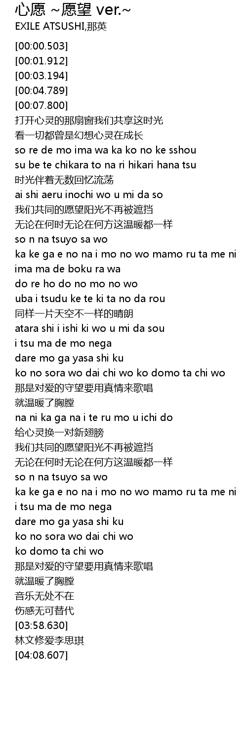 | [03:59.654] | lín wén xiū ài lǐ sī qí |