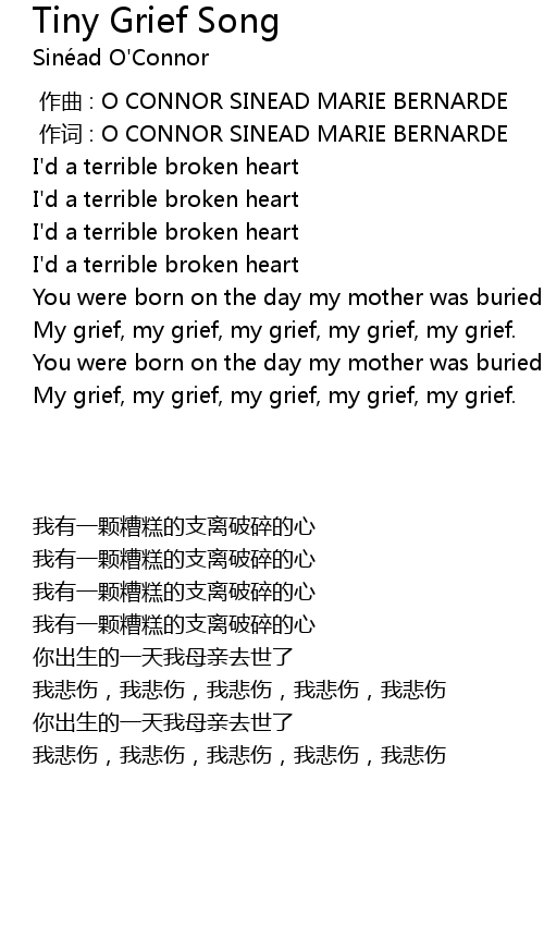 | [01:02.03] | My grief, my grief, my grief, my grief, my grief. |