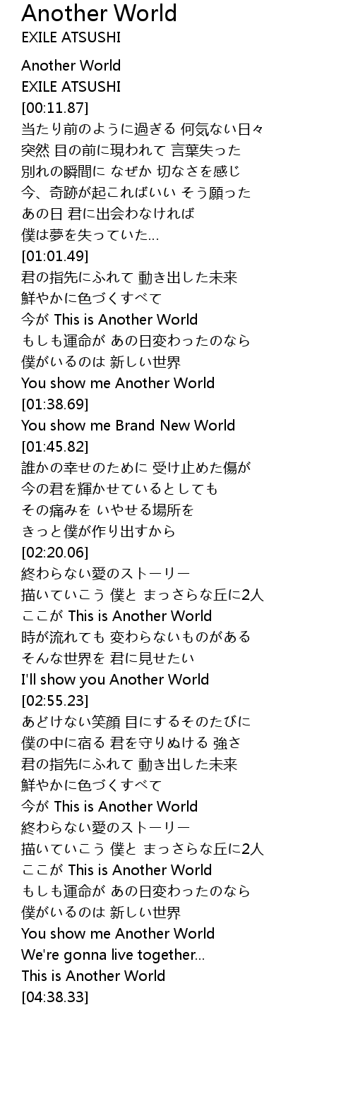 | [03:55.40] | 僕がいるのは 新しい世界 |