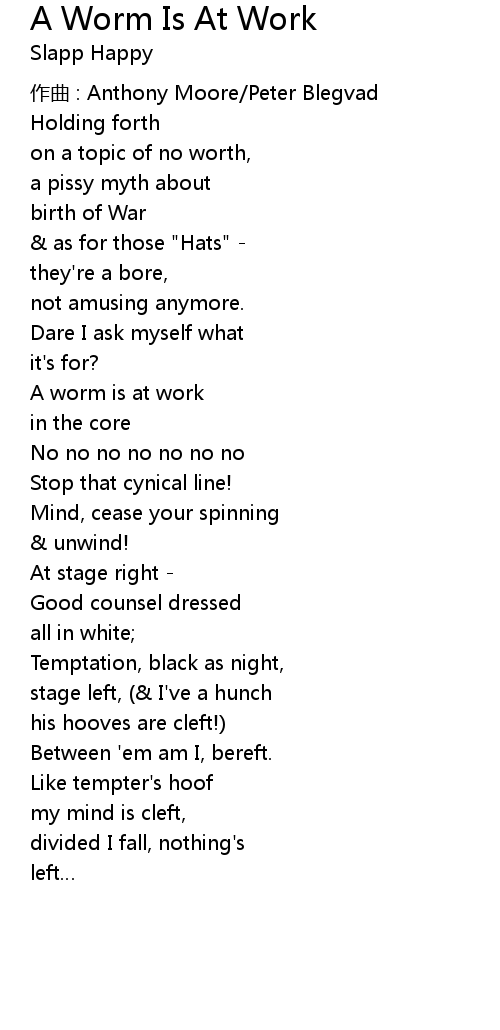 | Song | A Worm Is At Work |