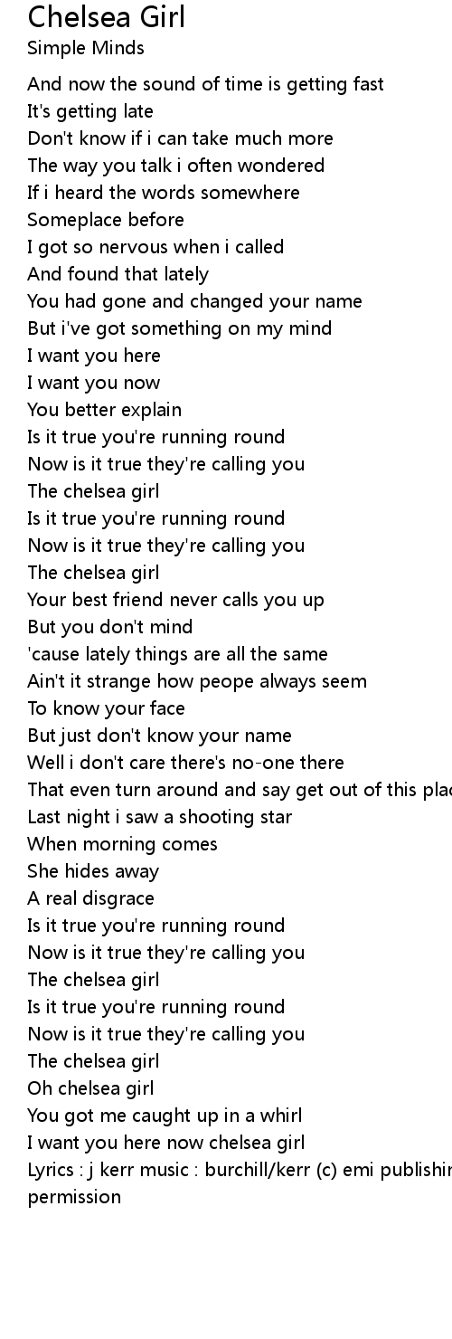 Lyrics : j kerr music : burchill/kerr (c) emi publishing ltd reproduced without permission |