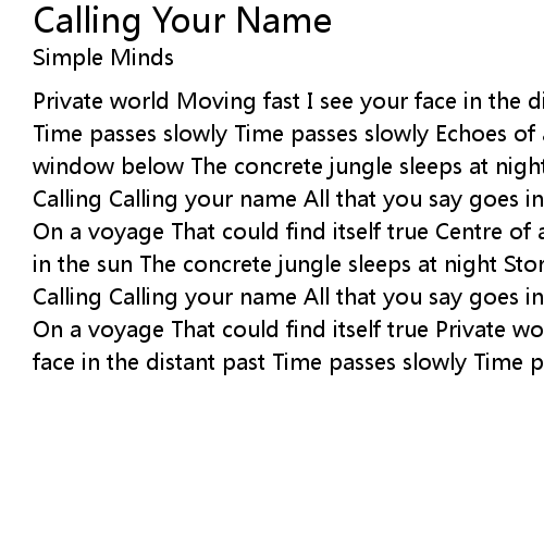 Private world Moving fast I see your face in the distant past Time passes slowly Time passes slowly Time passes slowly Echoes of an empty room Assassin at the window below The concrete jungle sleeps at night Story ends Leave him alone Calling Calling your name All that you say goes in vain I would like to find you On a voyage That could find itself true Centre of a scene Where a man lies dying in the sun The concrete jungle sleeps at night Story ends Can't leave him alone Calling Calling your name All that you say goes in vain I would like to find you On a voyage That could find itself true Private world Moving fast I see your face in the distant past Time passes slowly Time passes slowly |