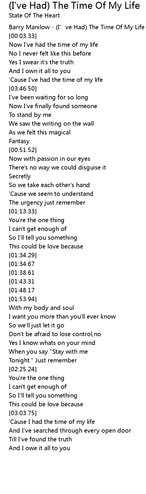| [00:01.12] | Barry Manilow I' ve Had The Time Of My Life |