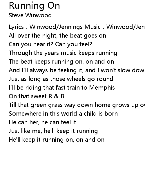 | The beat keeps running on, on and on | |