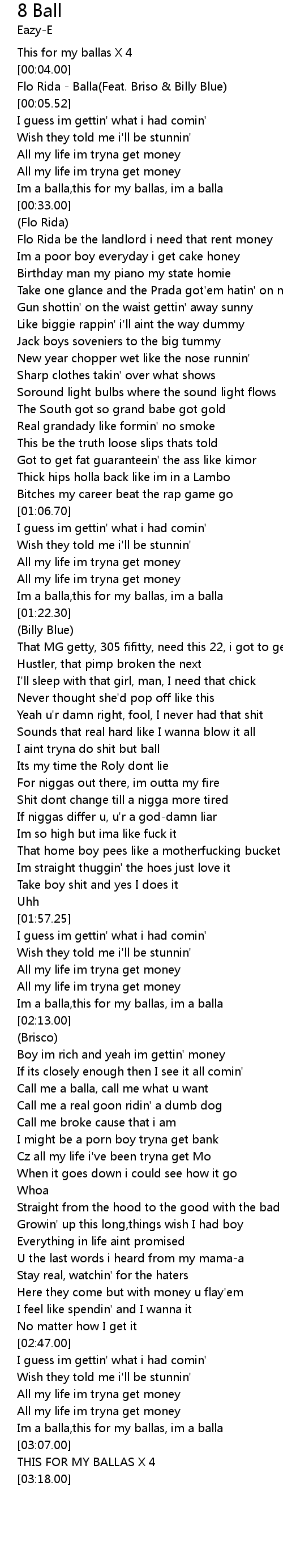 | [00:04.52] | Flo Rida - Balla(Feat. Briso & Billy Blue) |