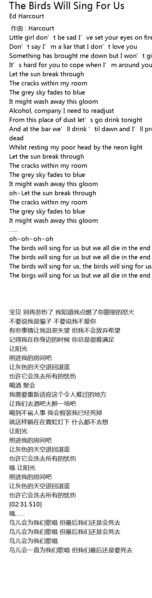| [03:31.930] | The birgs will sing for us but we all die in the end |