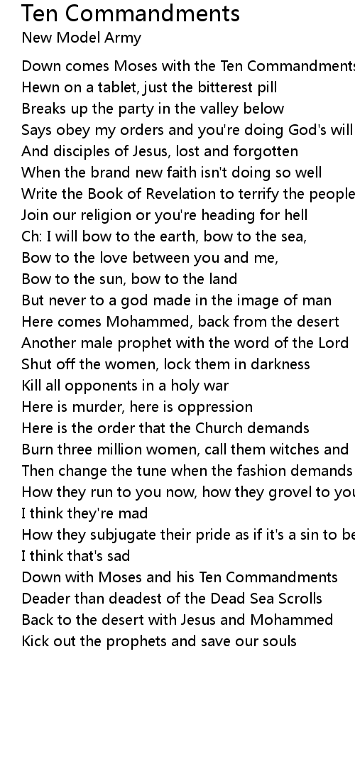 Down with Moses and his Ten Commandments |