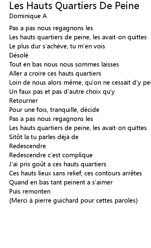 | Les hauts quartiers de peine, les avait-on quittes | |