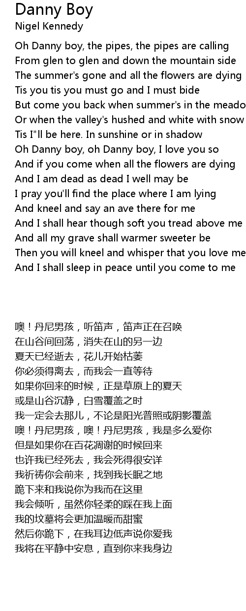 [01:26.130] Oh Danny boy, oh Danny boy, I love you so
