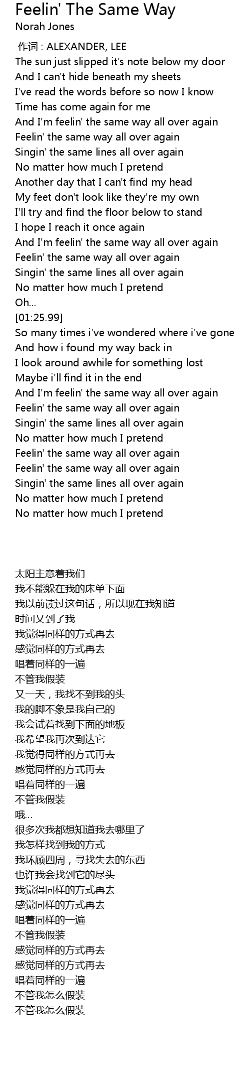 | [00:25.75] | And I'm feelin' the same way all over again |