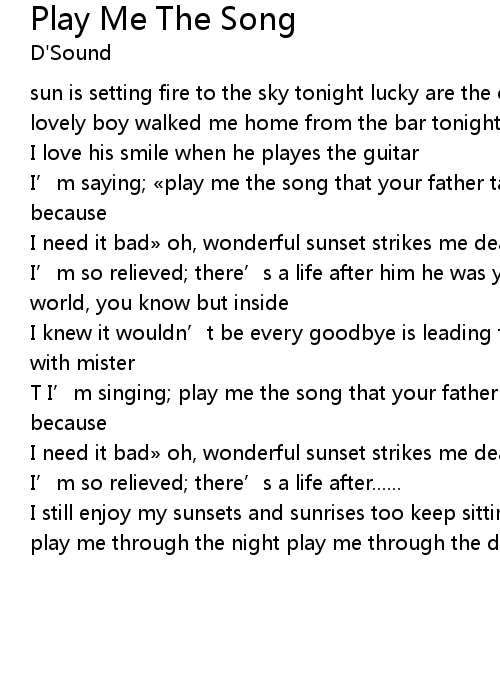 | I’m saying; «play me the song that your father taught you fill me with peace because | |