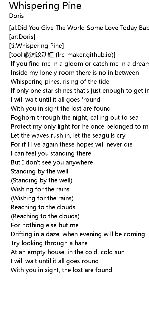 | [00:40.415] | If only one star shines that' s just enough to get inside |