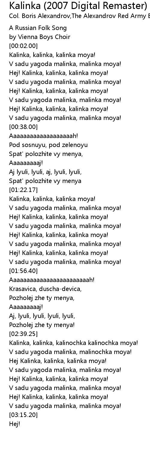 [03:03.72] Hej! Kalinka, kalinka, kalinka moya!