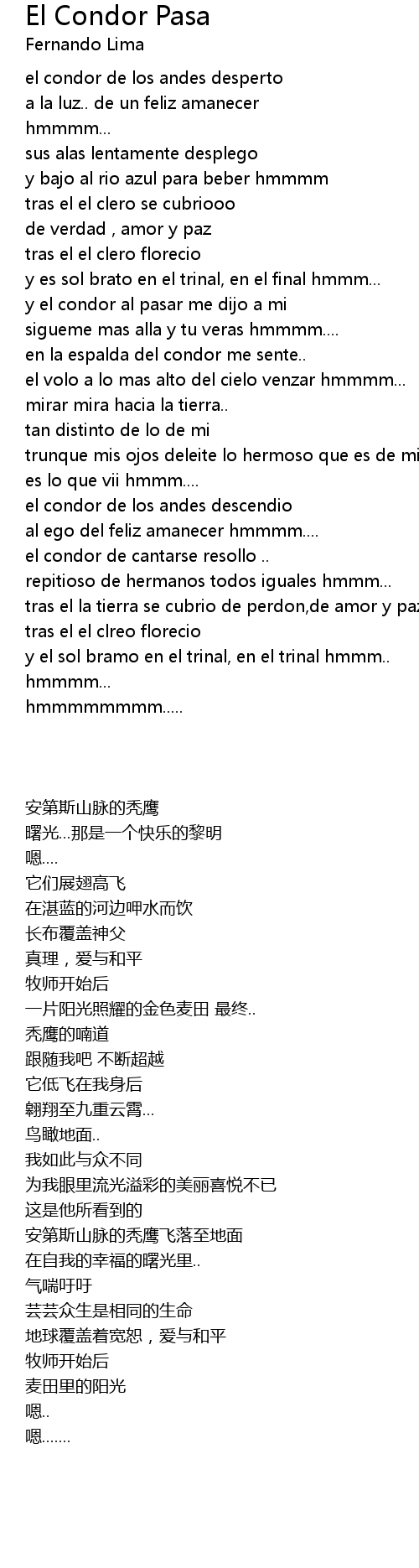 y el condor al pasar me dijo a mi |