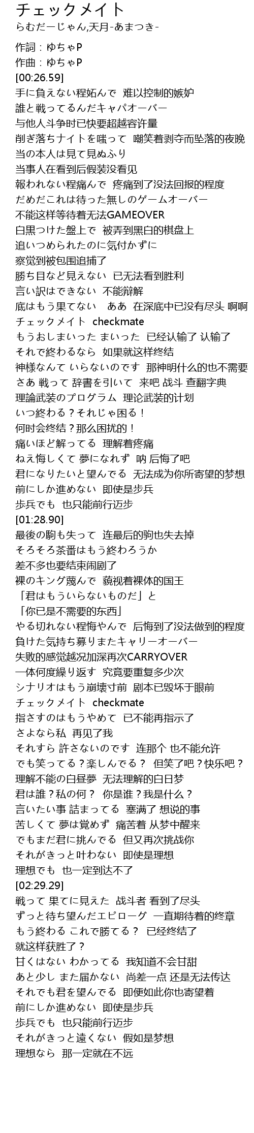 | [01:58.00] | チェックメイト checkmate |
