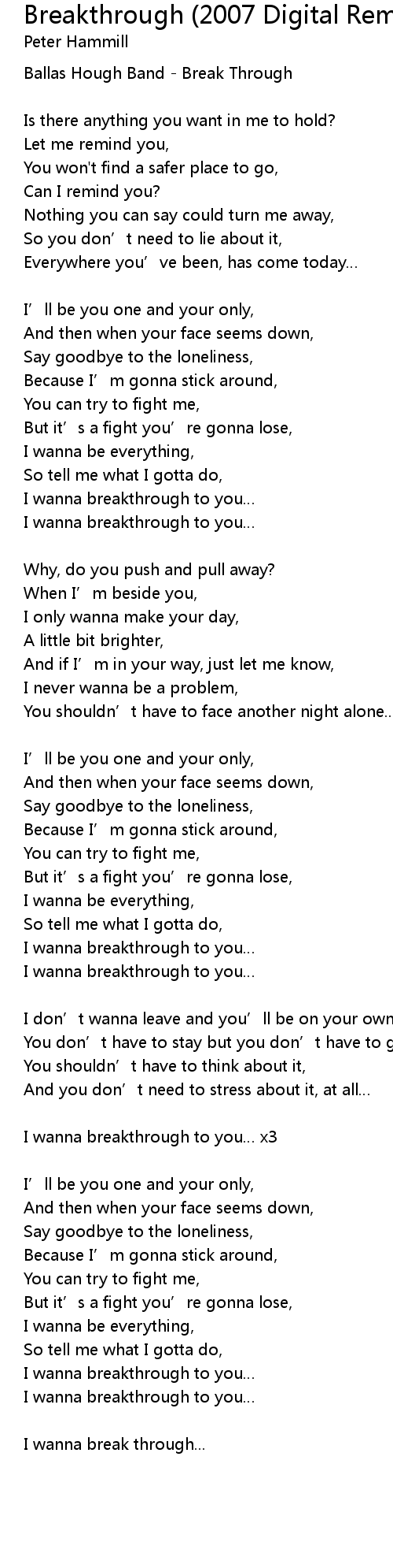 | I wanna breakthrough to you | |