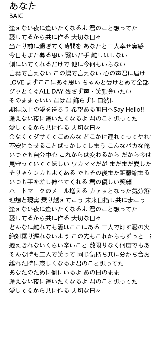 | 側にいてくれるだけで 他に今何もいらない | |