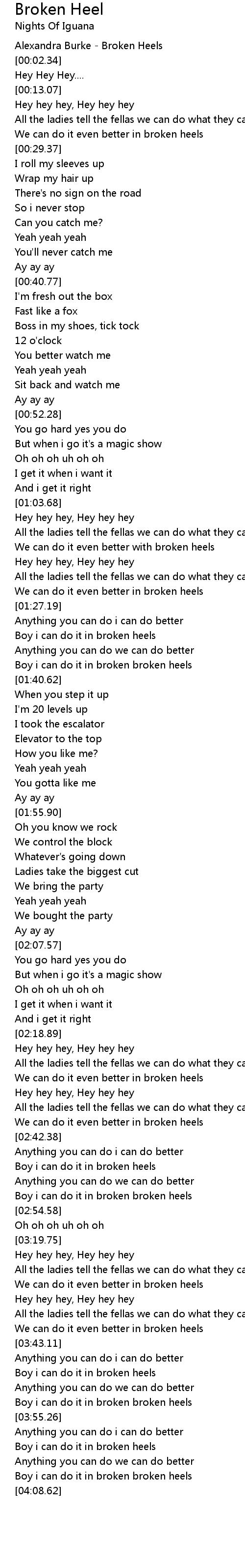 Boy i can do it in broken broken heels |