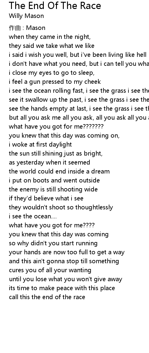 | Song | The End Of The Race |