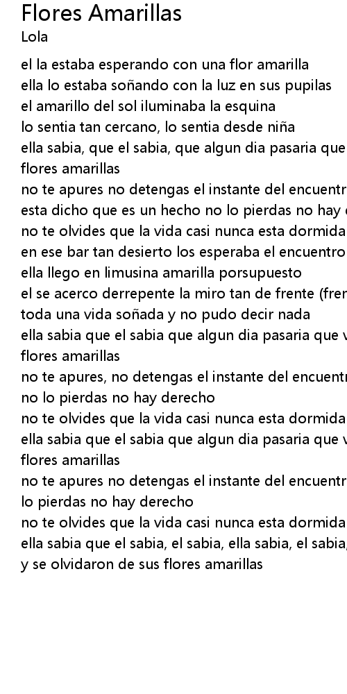 | ella sabia, que el sabia, que algun dia pasaria que vendria a buscarla con sus flores amarillas | |