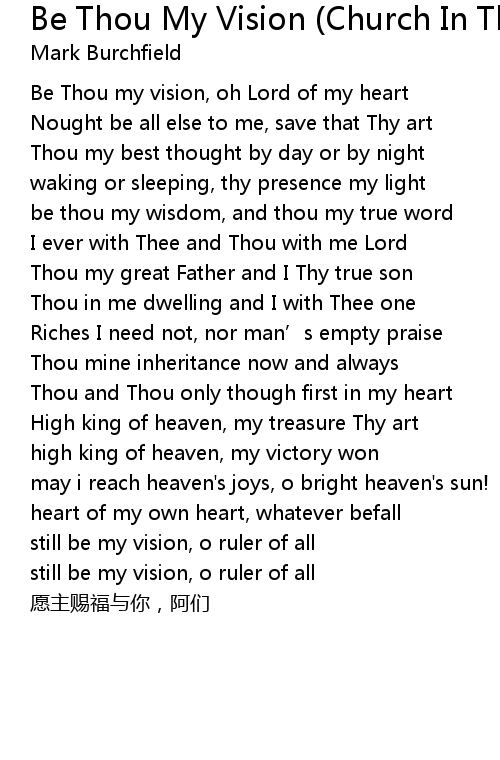 | [00:10.36] | Be Thou my vision, oh Lord of my heart |
