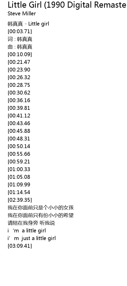 | [00:01.12] | 韩真真 - Little girl |