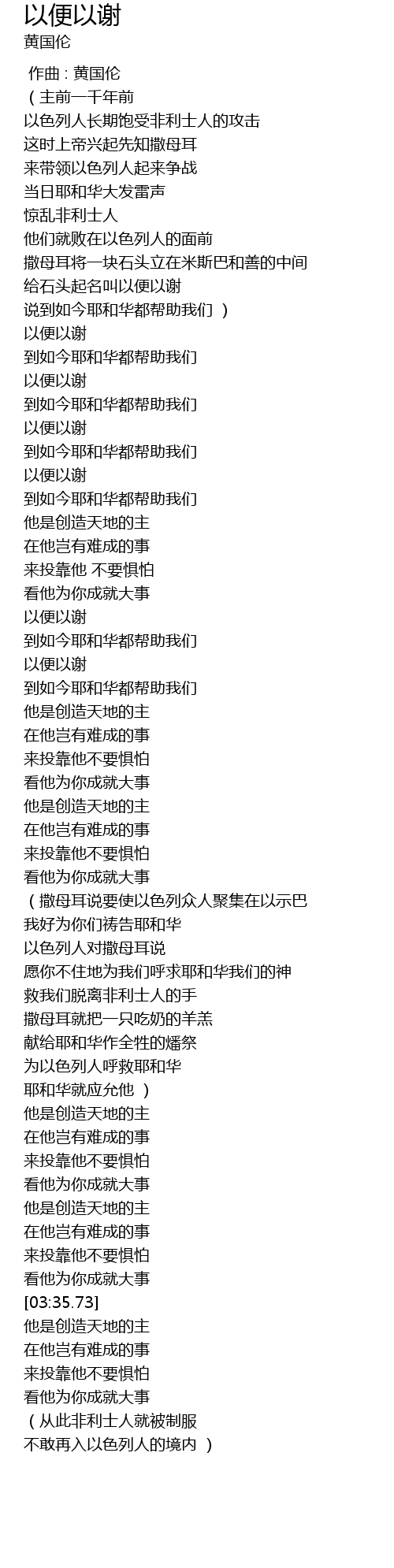 | [02:54.29] | 为以色列人呼救耶和华 |