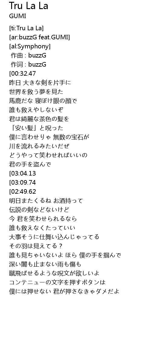 | [01:20.98][02:49.62][03:17.62] | Trururu La La Tiya... |