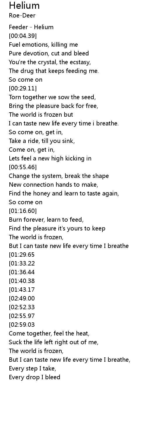 | [03:08.62][02:55.97][01:52.58] | Lets feel a new high kicking in |