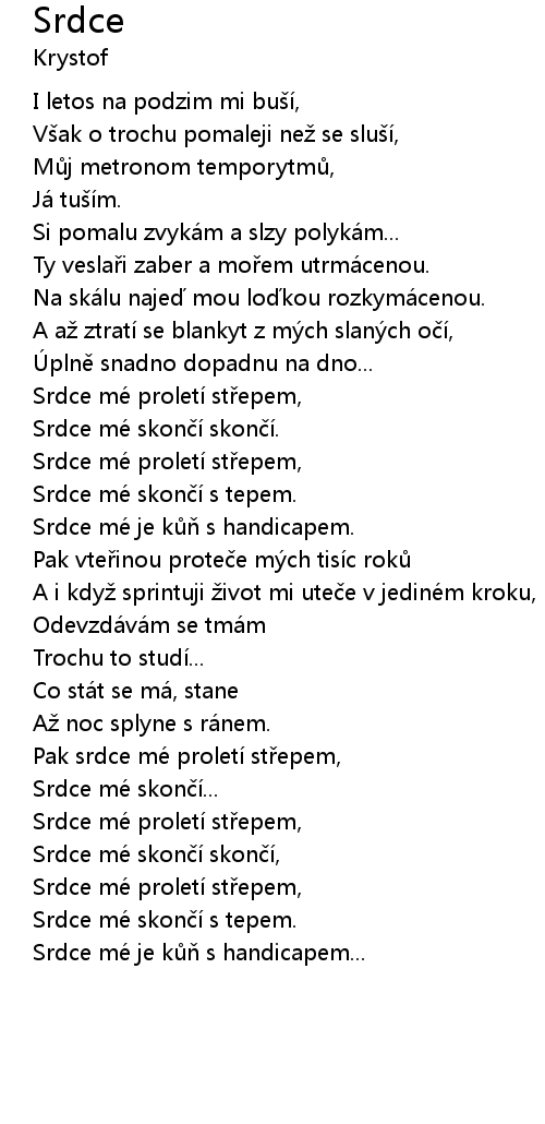 | Srdce mé skončí skončí, | |