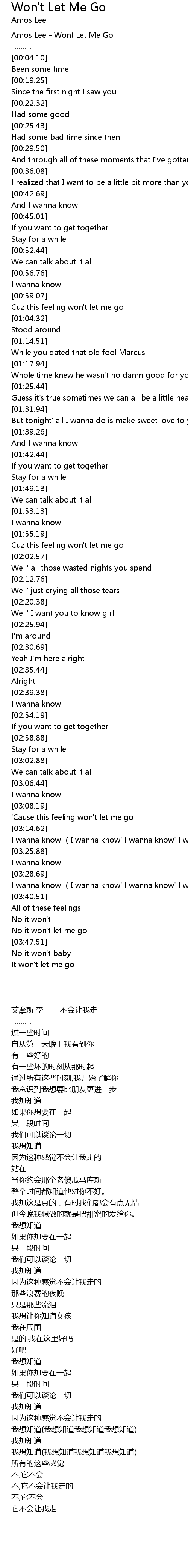 | [00:00.78] | Amos Lee Wont Let Me Go |