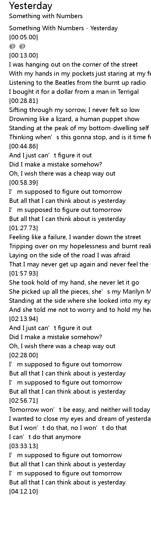 | [00:59.33] | I’m supposed to figure out tomorrow |