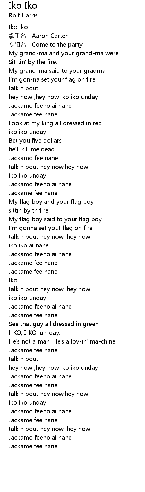 | [00:05.53] | Iko Iko |